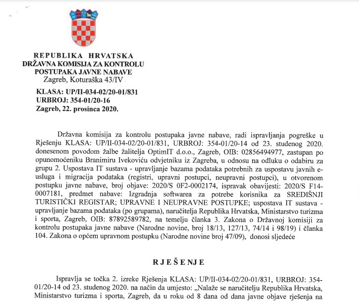 Također se pristiglom predstavkom putem elektroničke pošte precizno navodi kako je na mjesto ravnateljice Uprave za EU fondove Ministarstva turizma i športa postavljena Natalija Havidić, inače Đakićeva veza iz Virovitice, iako joj je projekt digitalizacije koji je vodila u gadnim problemima i velikom kašnjenju. Naime, Državna komisija za postupke javne nabave (DKOM) joj je poništila odluke o odabiru za glavni dio projekta, i to: