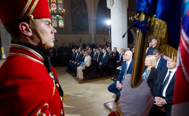 Na svečanom euharistijskom slavlju sudjelovali su predsjednica Republike Hrvatske Kolinda Grabar Kitarović, predsjednik Hrvatskog sabora Gordan Jandroković, predsjednik Vlade Republike Hrvatske Andrej Plenković, predstavnici Hrvatske vojske te javnog i kulturnog života u Republici Hrvatskoj.