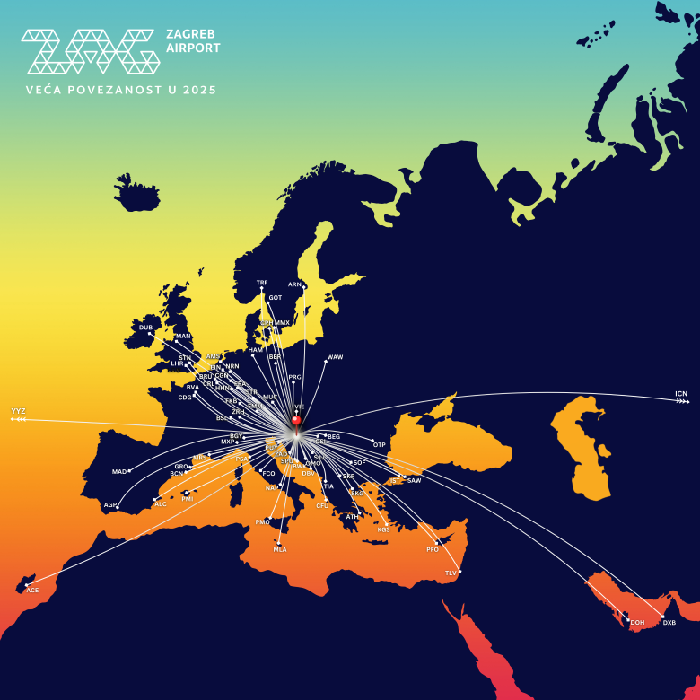 Croatia Airlines ima značajnu ulogu u cjelogodišnjoj povezanosti Hrvatske s Europom i svijetom, pridonoseći razvoju gospodarstva i turizma. Naš nacionalni prijevoznik omogućuje pouzdane veze tijekom cijele godine, i povezuje Zagreb s ključnim europskim čvorištima, omogućujući daljnje konekcije prema globalnim odredištima. Croatia Airlines je u ljetnom redu letenja 2025. godine najavila otvaranjenovih linija prema Milanu, Pragu, Bukureštu, Madridu i Hamburgu, sa tri leta tjedno od početka srpnja do kraja listopada. Osim toga, povećat će broj frekvencija na postojećim linijama za Barcelonu i Tiranu, dok će letovi za Berlin i Stockholm u ovogodišnjem ljetnom redu letenja započeti već krajem ožujka.