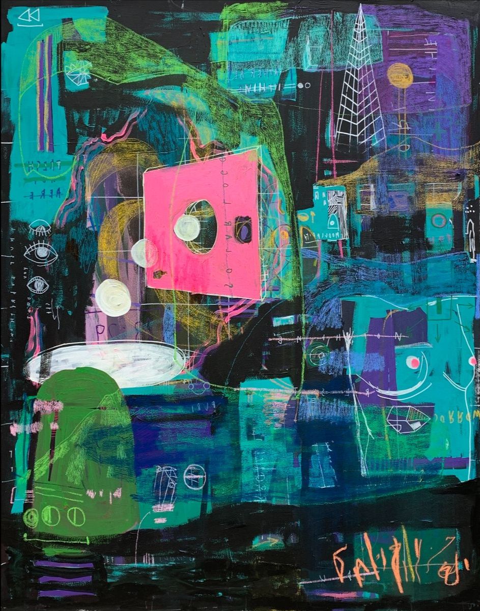 Naime, Petra Šabić dvodimenzionalnu površinu slike pretvara u višedimenzionalnu percepciju doživljavanja stvarnosti. Podloga crne boje na platnu ističe kolorizam i stvara dodatnu dinamiku kompozicije. Umjetnica osim što vješto kombinira različite slikarske tehnike na površini platna bilježi mnoge motive koristeći simbole, grafizme, crteže, tekst. Inspiraciju pronalazi u proučavanju babilonskih zvjezdanih karata, a mnoge znakove i simbole integrira u slike iz „vlastite kulturne povijesti“.