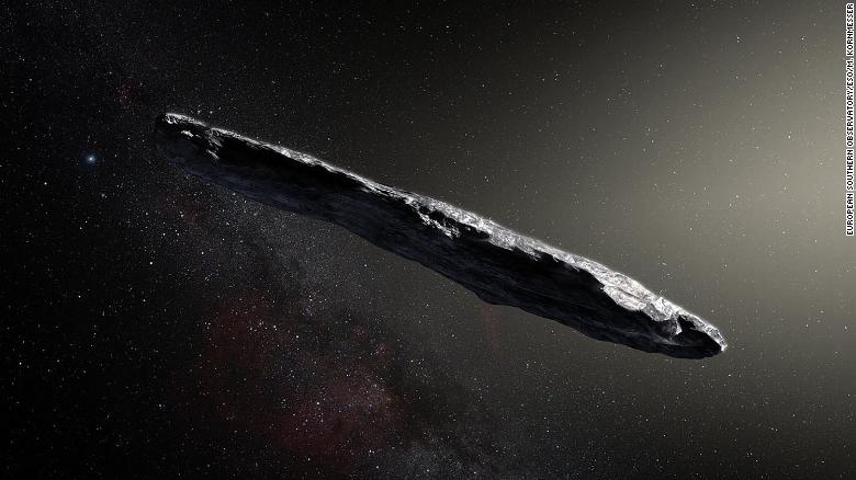 Slika 1 (naslovna): Asteroid Oumuamua, u stvari umjetnički prikaz jer on uopće nije snimljen nego samo izmjeren. Po nekima to je vanzemaljska svemirska sonda, takozvano solarno jedro.