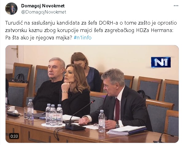 U Newsroomu, emisiji N1 televizije, ključne teme sa saslušanja kandidata za čelnog čovjeka DORH-a, s novinarom Domagojem Novokmetom, urednikom i voditeljem ove emisije, analizirala je odvjetnica Vesna Alaburić, koja je, između ostalog, kazala: “Malo ću braniti suca Turudića, nije on odluku donio, nego vijeće. Nije on mogao zloupotrebljavati poziciju” – istaknula je Alaburić. “Ako se ima na umu da je riječ od gospođi od 78 godina i koja je u lošem zdravstvenom stanju, onda su to elementi koji utječu na kaznu. Mislim da je tema od javnog interesa, da su članovi sudskog vijeća dužni dati dogovore, a na neki način bih se složila s Turudićem – pa što ako je majka HDZ-ovca – to ne smije biti ni olakotna, ni otežavajuća okolnost”. I tako bi, valjda, trebalo biti.