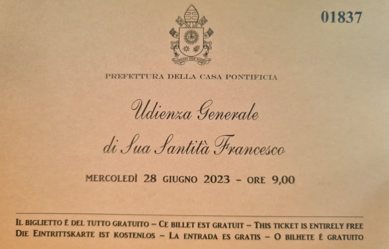 Stoga je opća audijencija koja se održala, u srijedu 28. lipnja 2023., na Trgu svetoga Petra, bila posljednja prije ljetne stanke. Bila je to i prva audijencija nakon Papine hospitalizacije u Poliklinici Gemelli radi operacije abdomena. Naime, audijencija koja se trebala održati 21. lipnja 2023., otkazana je kako bi se poštovao postoperativni oporavak Svetoga Oca.